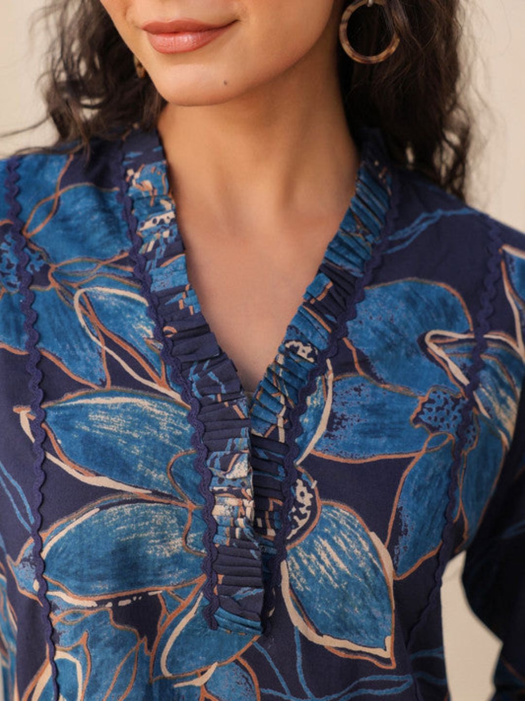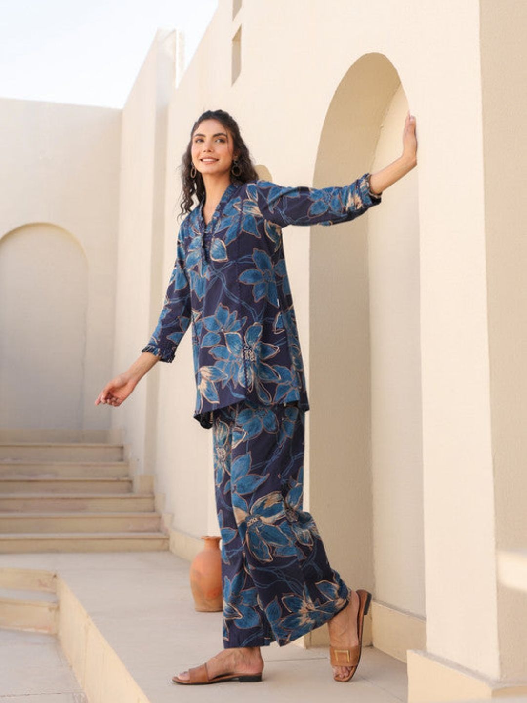 Dive into the trend of the season with this co-ord set in a lively Blue Color hue. The Cotton material ensures durability and easy care for a long-lasting and vibrant look. Stay effortlessly on-trend with the straight-cut design of this co-ord set. The contemporary style brings a touch of modernity to your outfit, perfect for casual outings or special occasions.
