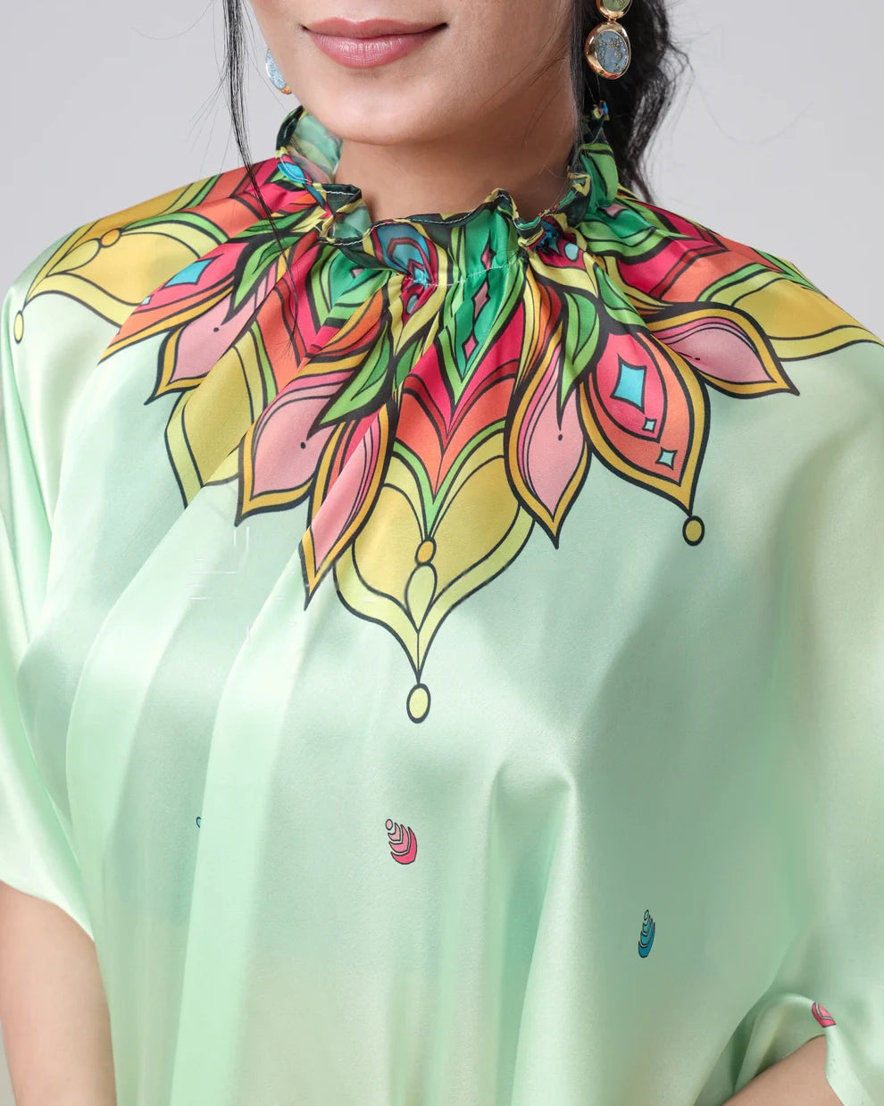 Yes, you read that right! This saree features a cleverly designed hole in the pallu. This innovative feature allows you to drape and secure your pallu without the need for constant adjustments, freeing your hands for other tasks. Enjoy the grace of a perfectly draped saree, completely handsfree! Experience the future of saree draping with the Handsfree Mandala Saree. It's not just a garment; it's a game-changer.