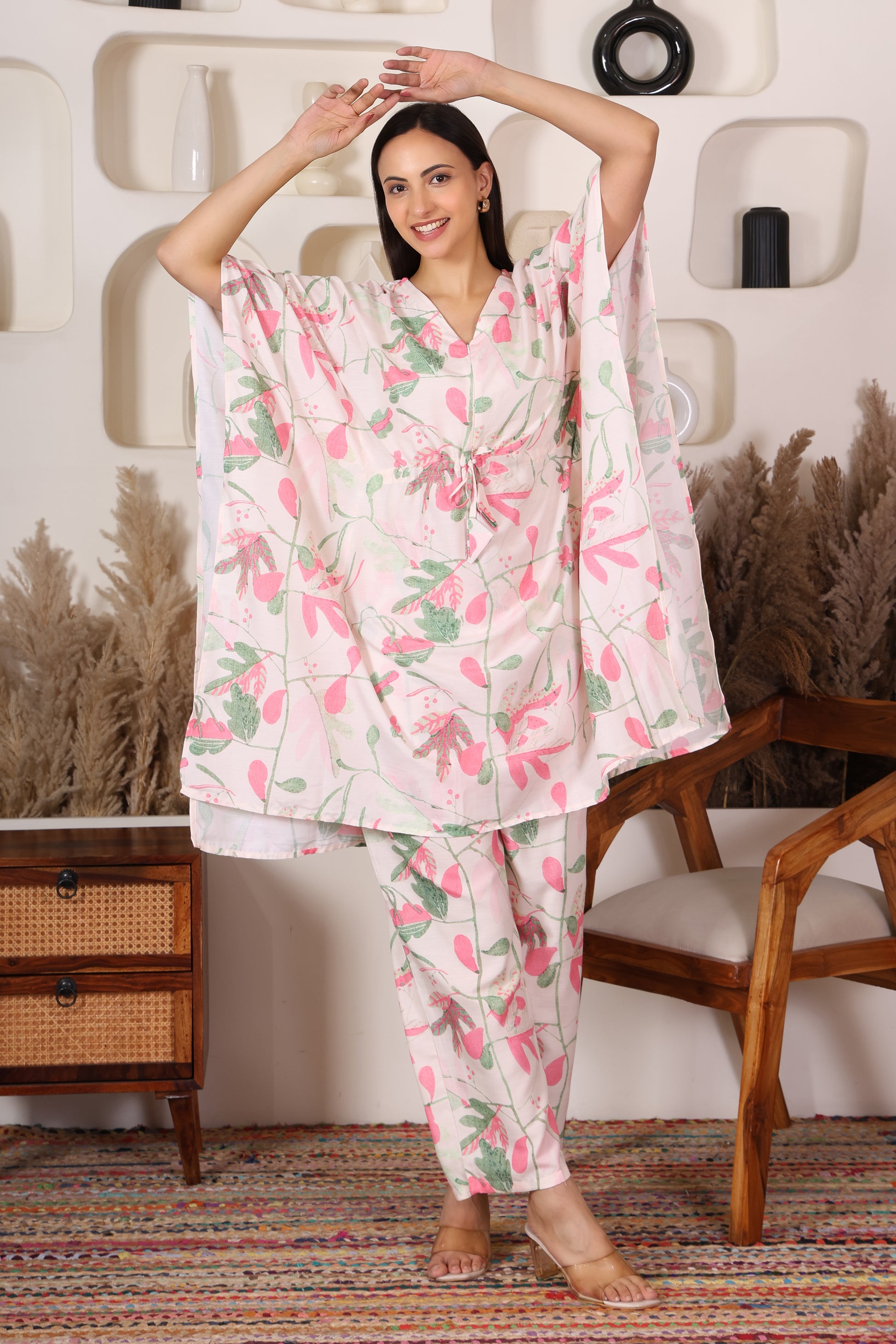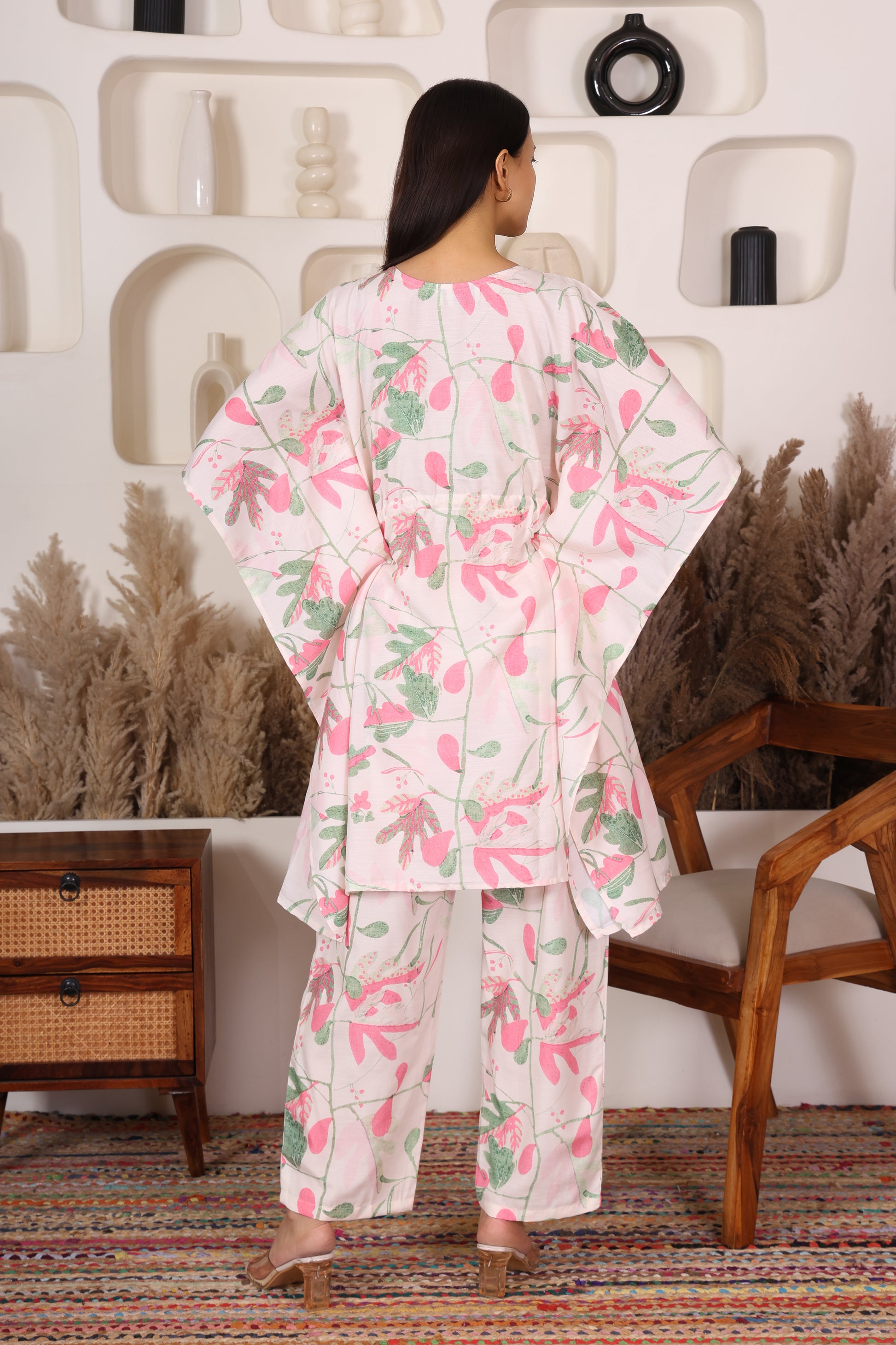 Hosita Stylish Pink Floral Kaftan Co Ord Set