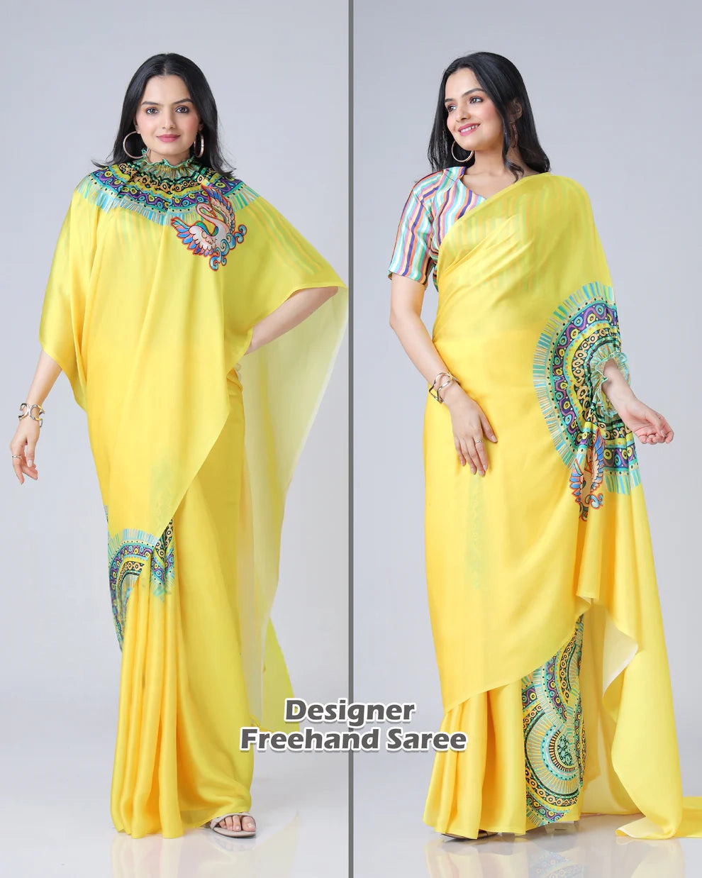 Saree Color: Yellow with Multicolor Design