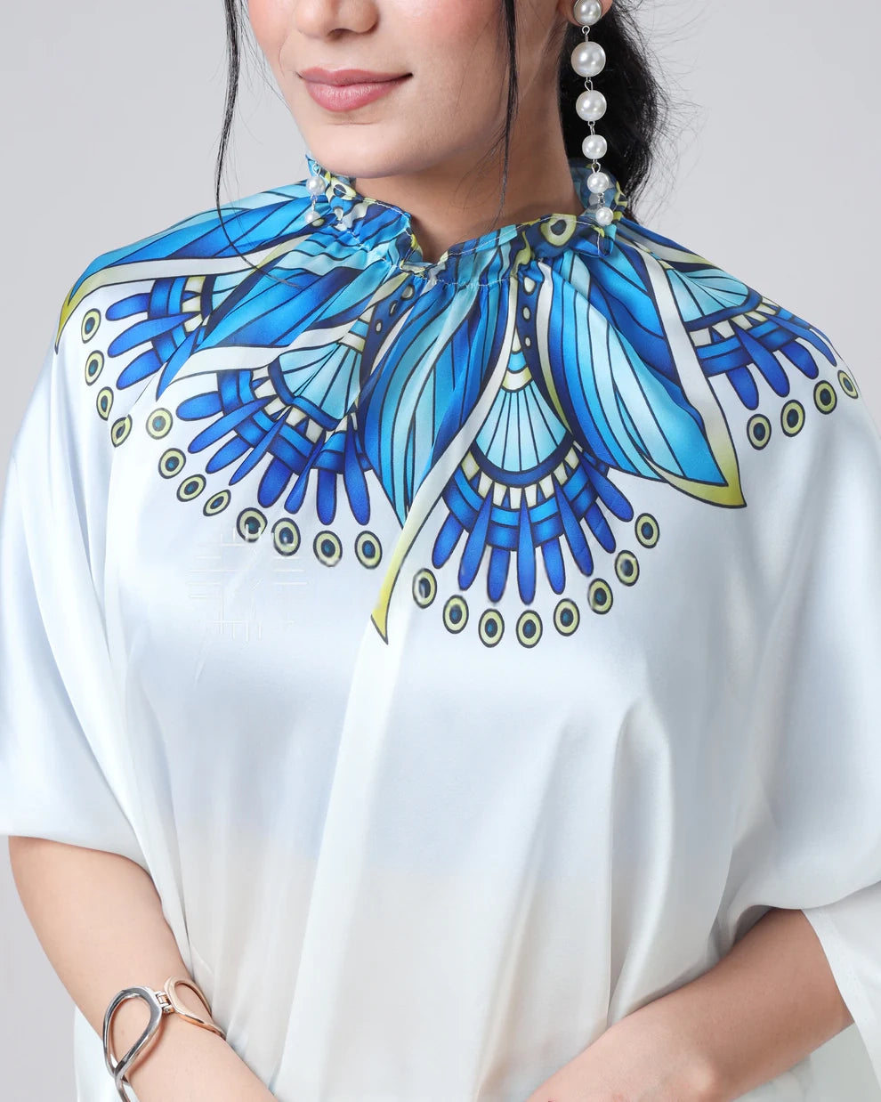 Yes, you read that right! This saree features a cleverly designed hole in the pallu. This innovative feature allows you to drape and secure your pallu without the need for constant adjustments, freeing your hands for other tasks. Enjoy the grace of a perfectly draped saree, completely handsfree! Experience the future of saree draping with the Handsfree Mandala Saree. It's not just a garment; it's a game-changer.